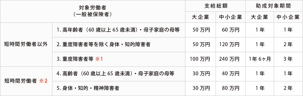 ※1 重度身体・知的障害者、精神障害者、45歳以上の身体・知的障害者